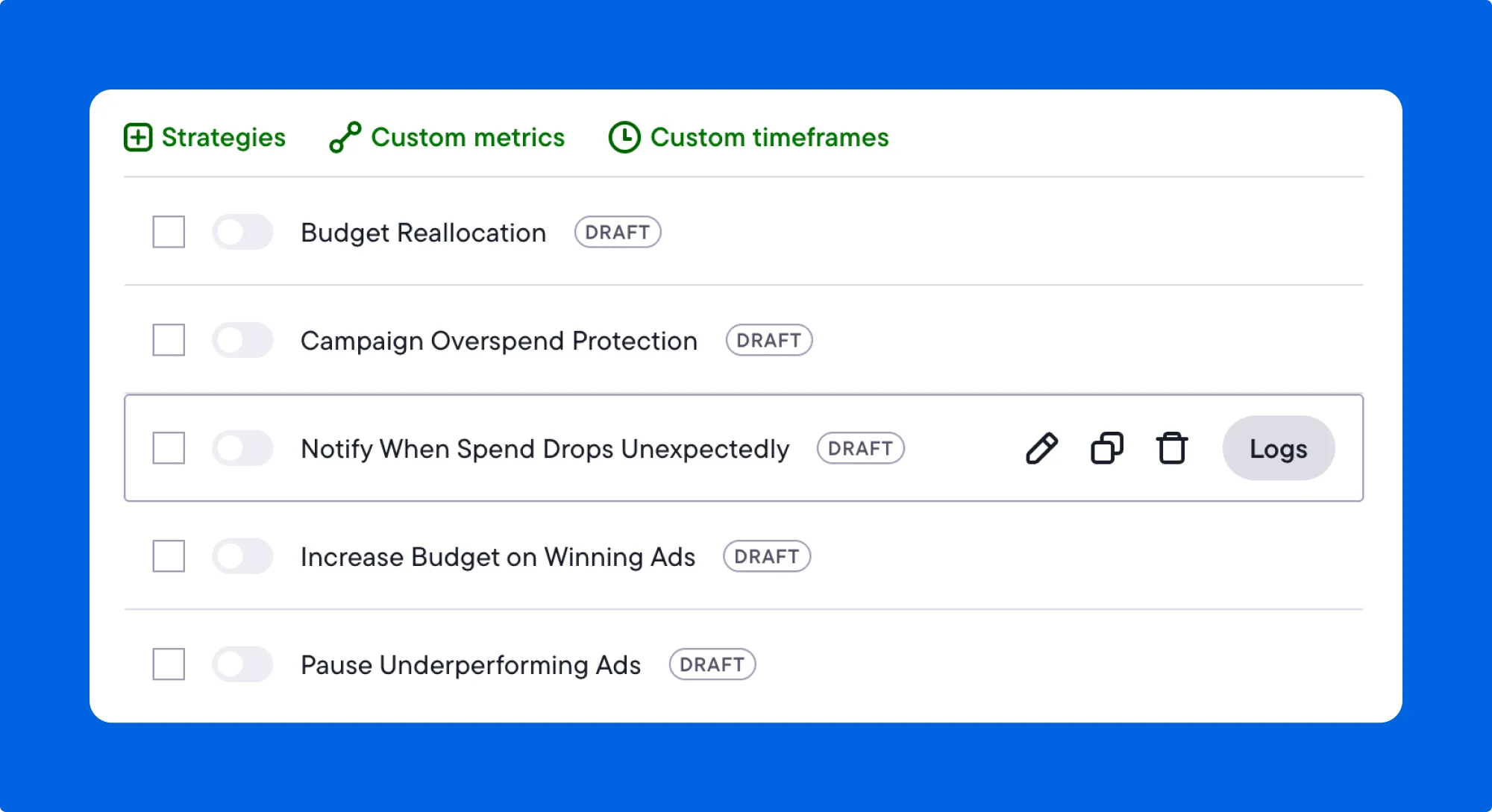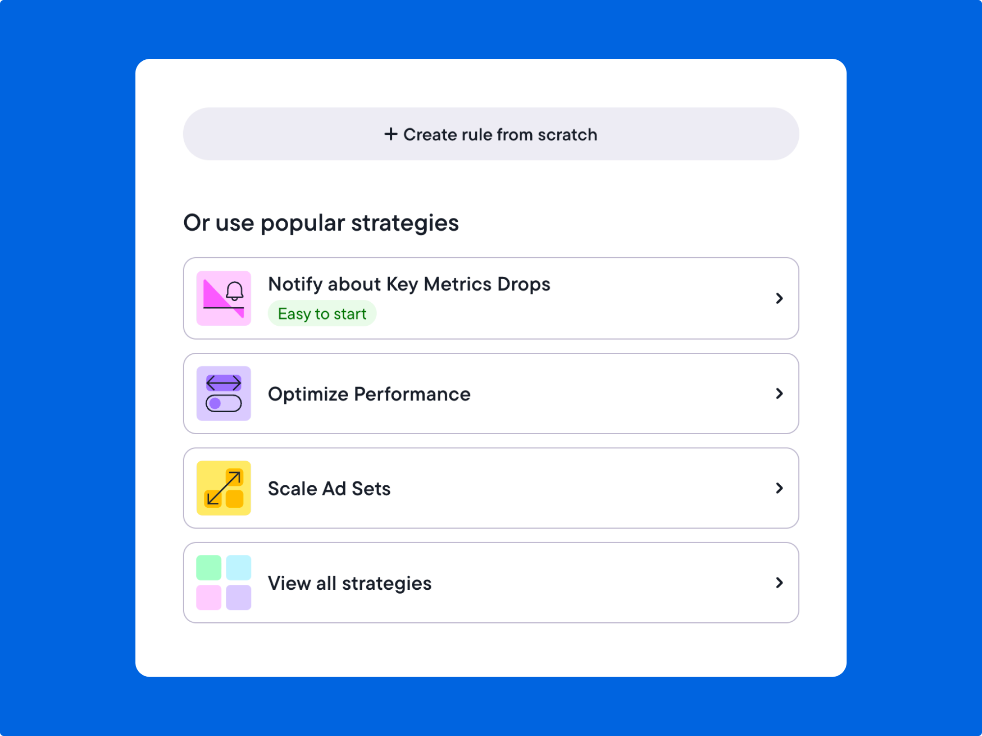 Automated rules help you shape those signals by setting clear thresholds that support your goals. Instead of relying on one-off checks, your account stays aligned with the same logic you use to evaluate performance.