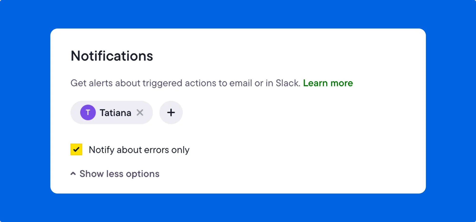 With Bïrch, you can receive notifications about triggered actions via email or Slack.