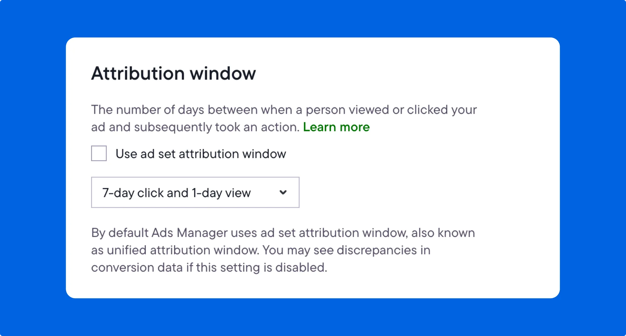 - Timeframe mismatches: If you compare Ads Manager to rule checks, make sure the data comes from the same attribution window. Using different windows creates false discrepancies.