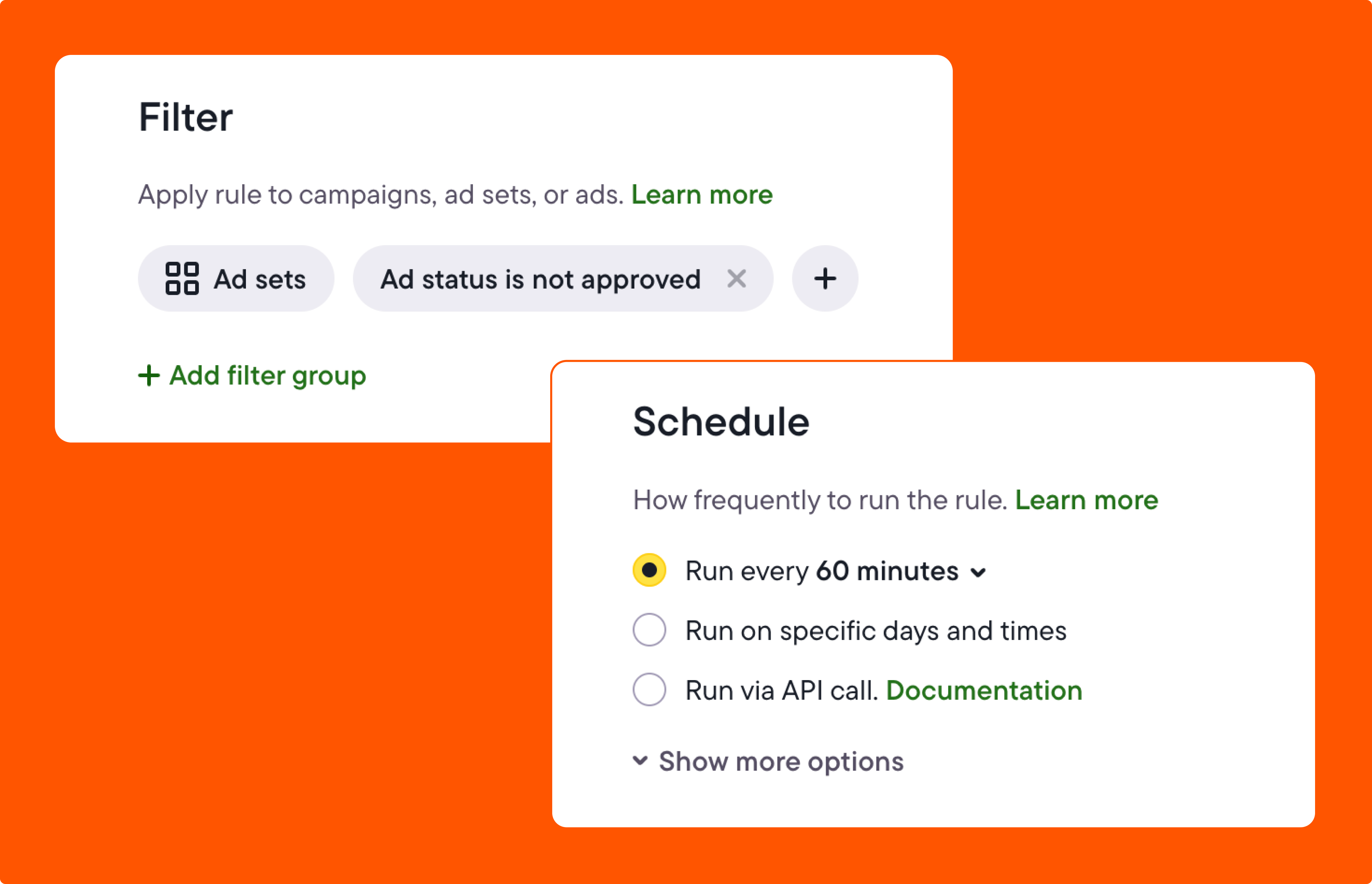 - Decide how often Bïrch should check for rejected ads (hourly, daily, or a frequency that fits your workflow).