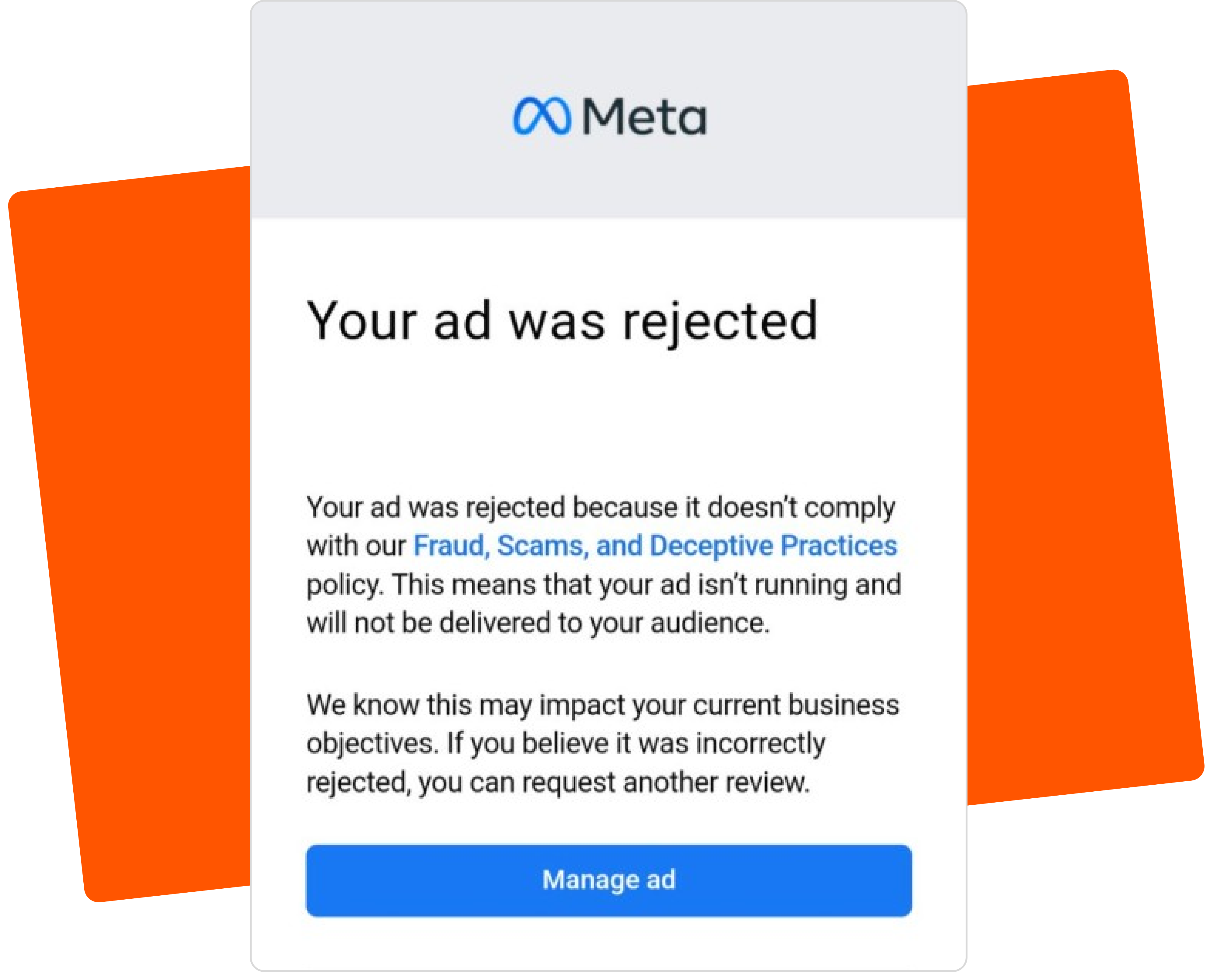 Ads are rejected when they violate Meta’s advertising policies or community standards. For example, ads that include prohibited or restricted content, misleading claims, dangerous products, or unauthorized use of intellectual property will likely be rejected.