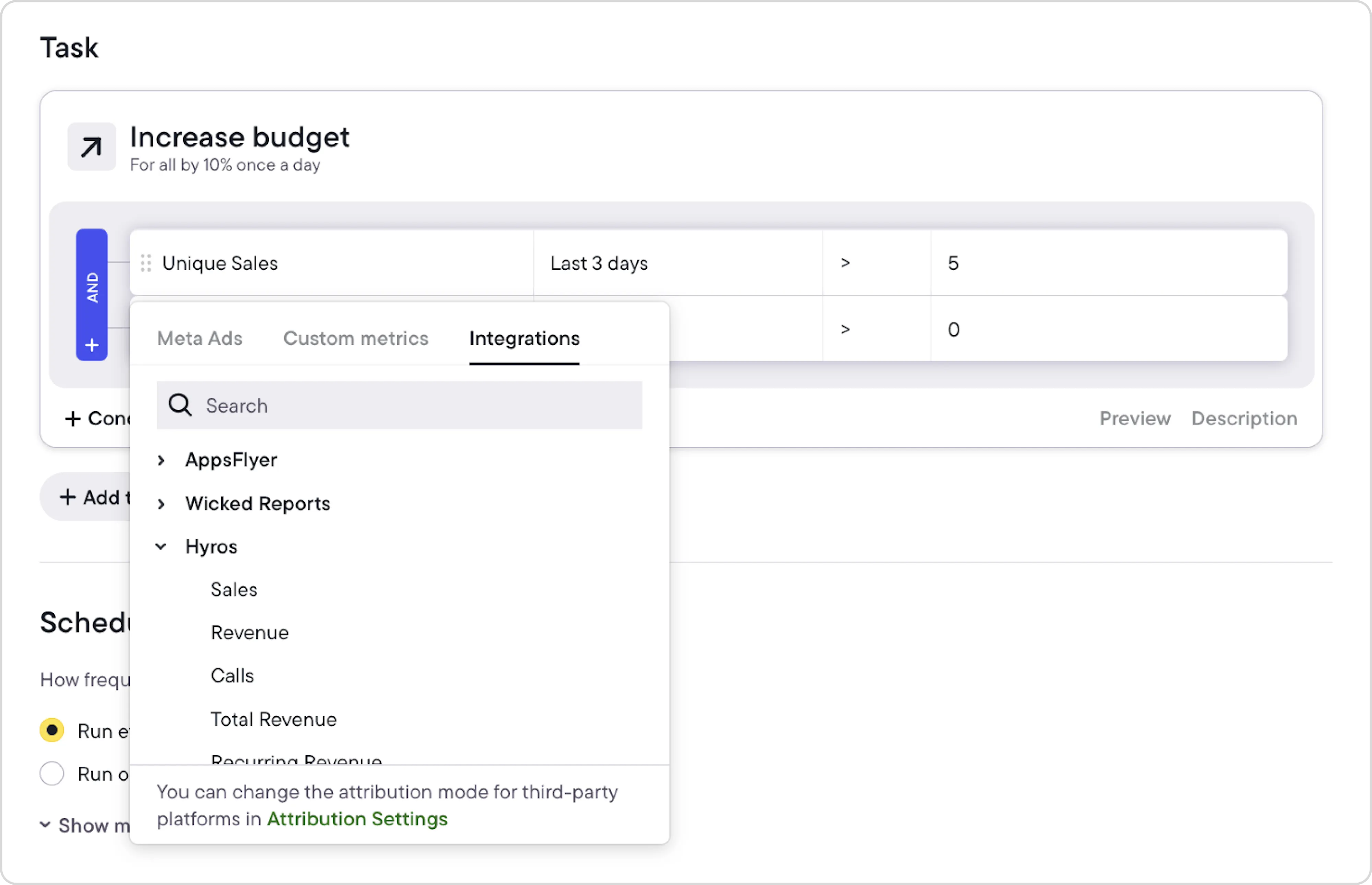 If you're using Hyros, Wicked Reports, or Appsflyer, you can build automated rules based on the tracking and attribution data from these tools. They provide more accurate conversion tracking, and when connected to Bïrch, they allow you to scale and optimize your ads more effectively.
