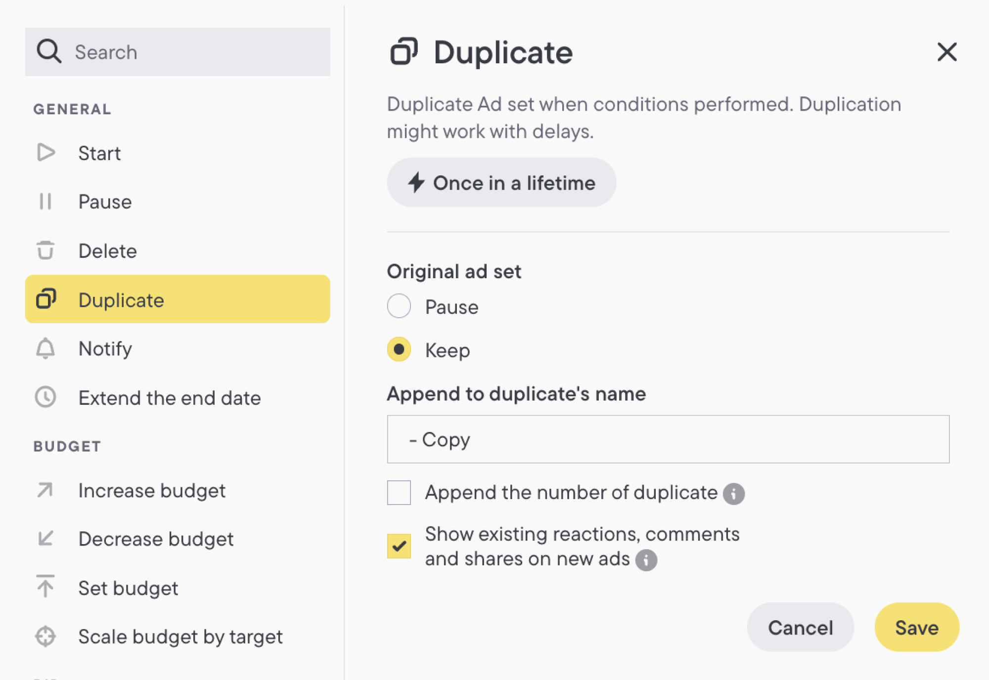- Budget: Match or slightly exceed BAU ad set spend for fair comparison.