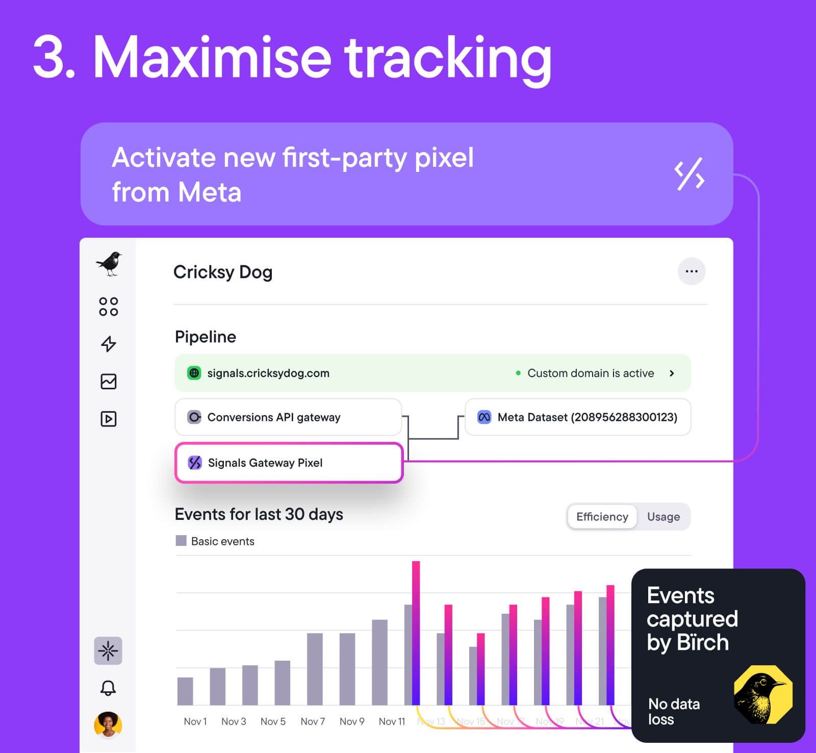 Signals Gateway Pixel collects data from your website and shares it exclusively with your Signals Gateway cloud server, without any use of third-party cookies and is independent from Meta’s servers.